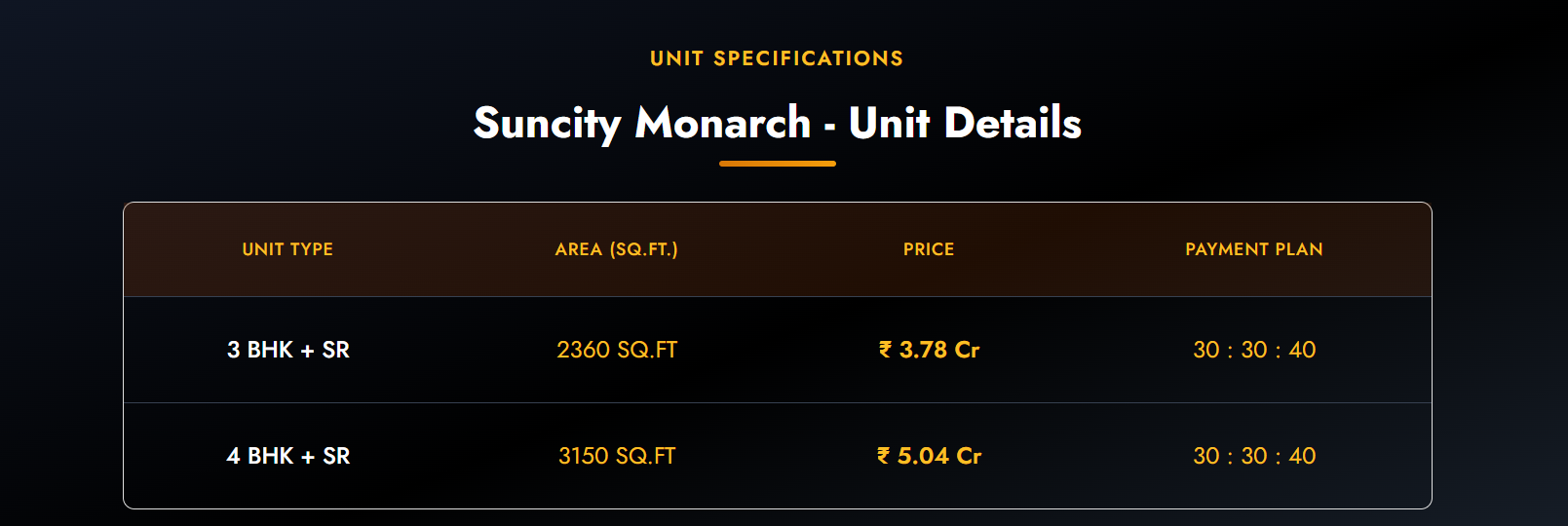 Suncity Monarch is a newly launched ultra-luxury residential project by the renowned Suncity Group. Nestled in the heart of Sector 78, Gurgaon, this premium enclave redefines upscale living with its exquisite 3 BHK and 4 BHK residences designed for modern elegance and comfort. With over 70% open green spaces, mesmerizing Aravalli views, and a grand clubhouse surrounded by lush landscaped gardens, Suncity Monarch Sector 78 offers a lifestyle that’s both exclusive and serene. Every element—from the world-class architecture to the sophisticated interiors—reflects the hallmark of Suncity’s luxury craftsmanship, ensuring an unmatched living experience in Gurgaon’s most sought-after location.