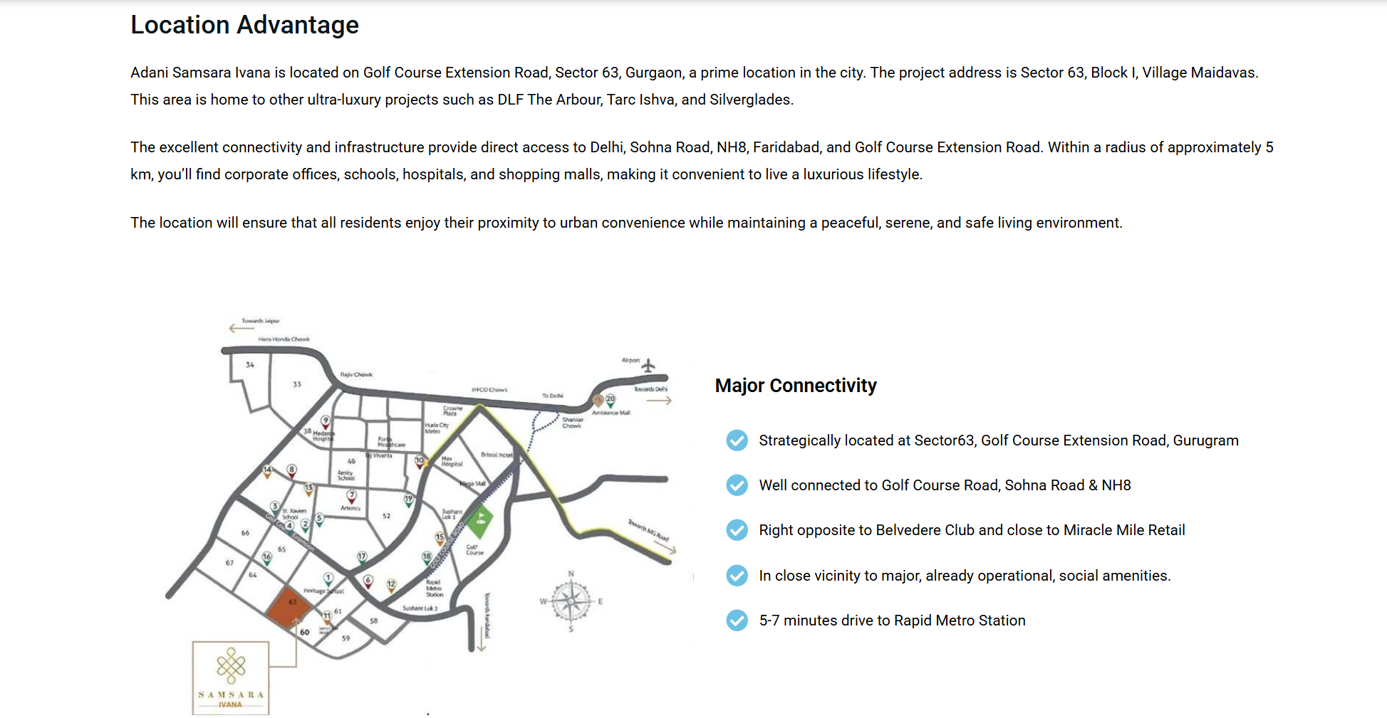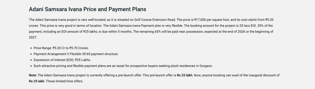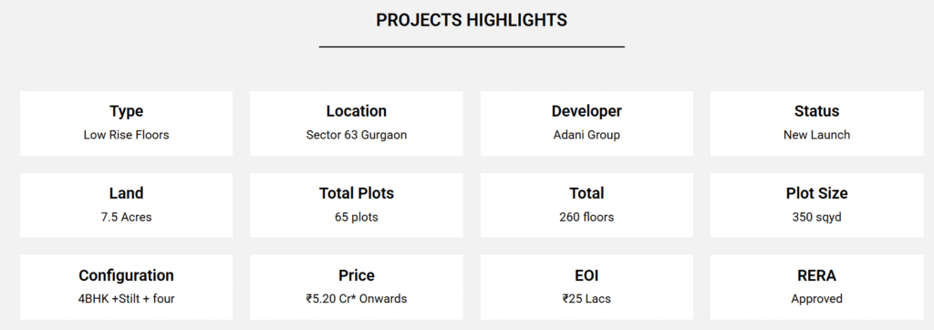 Adani Samsara Ivana is a newly launched residential project in Sector 63, Gurgaon. The Project is situated on Golf Course Extension Road. This is a luxury, low-rise gated township. Adani’s Ivana project has a total area of 7.5 acres. The Project will have an exclusive collection of 260 floors across 65 premium plots. The Ivana Sector 63 Gurgaon project offers luxury amenities and a fully gated community. It is ensuring a safe environment for families.